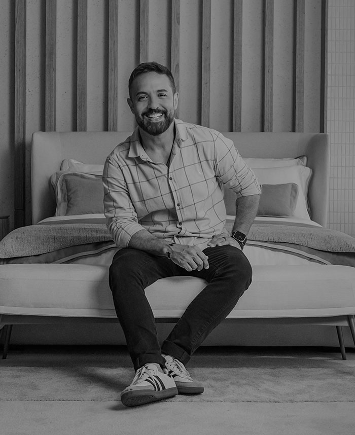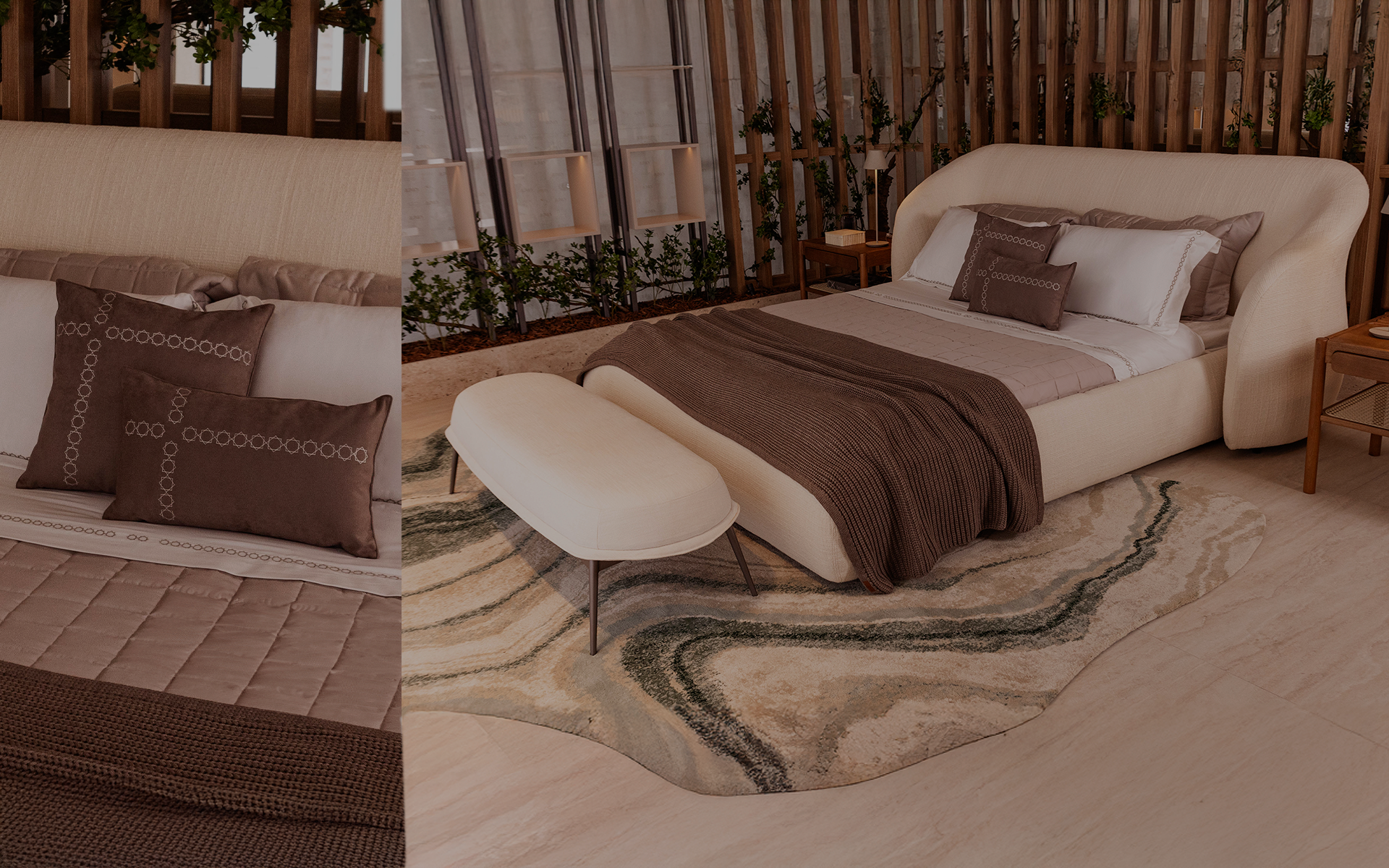 A Kingsdown não é somente uma loja de colchões. Ela está trazendo para o mercado todos os componentes desse quarto, como: a poltrona, o banco, a roupa de cama. Tudo isso faz parte desse conceito novo que a marca está trazendo para o Brasil.