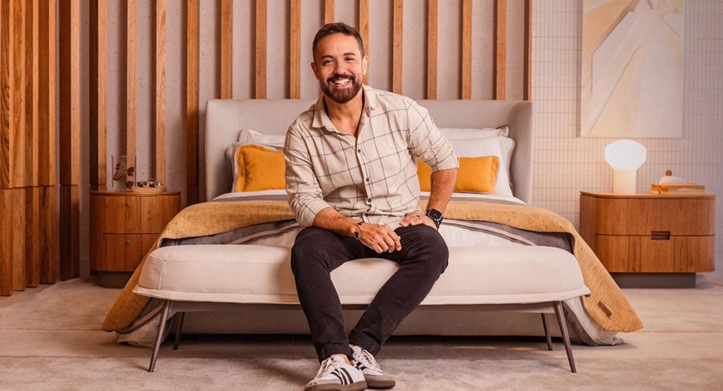 A Kingsdown não é somente uma loja de colchões. Ela está trazendo para o mercado todos os componentes desse quarto, como: a poltrona, o banco, a roupa de cama. Tudo isso faz parte desse conceito novo que a marca está trazendo para o Brasil.