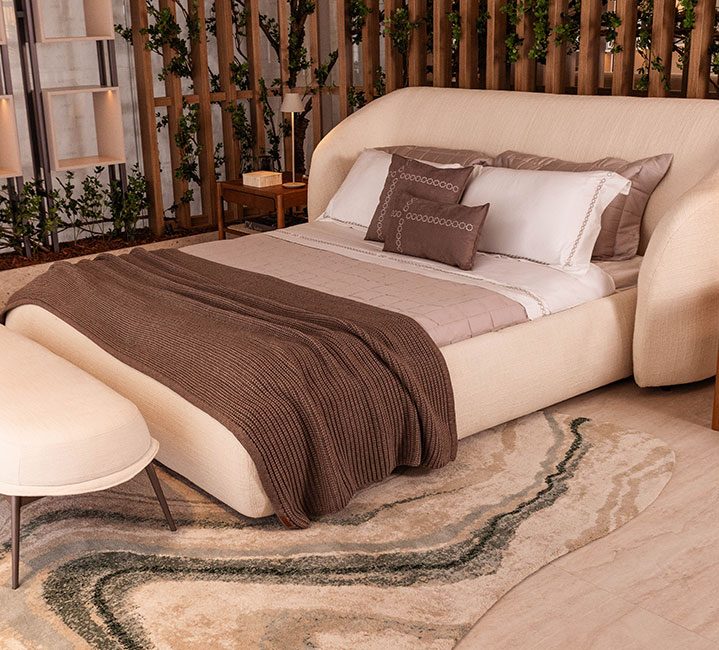 Quando a Kingsdown me chamou para trazer uma experiência para o cliente, eu achei bárbaro porque você pode proporcionar a sensação do colchão decorado e ambientado. Oferecer o quarto inteiro é realmente algo diferenciado.